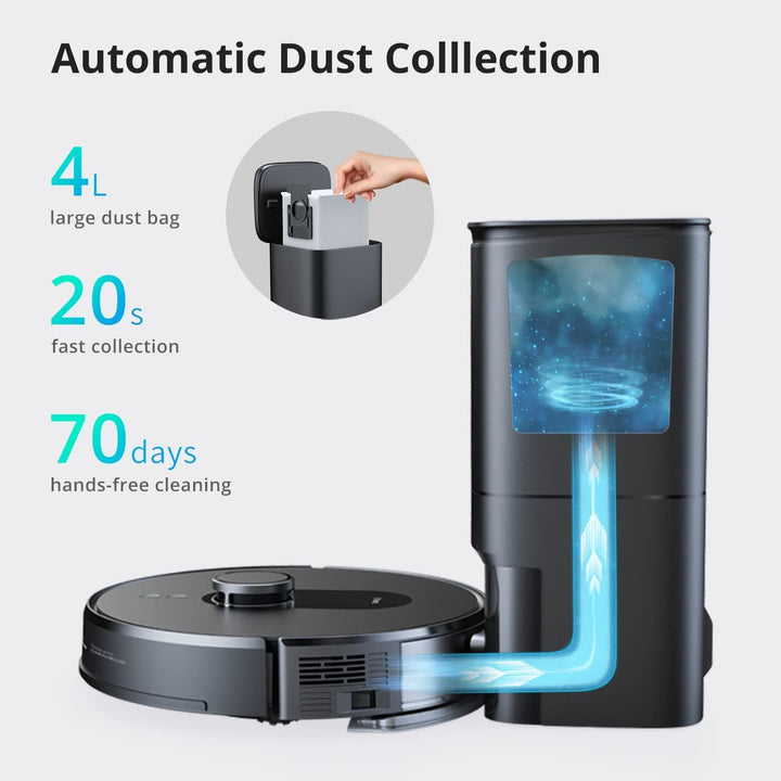 Automatic dust collection and 4L large dust bag Worry-free for up to 70 days