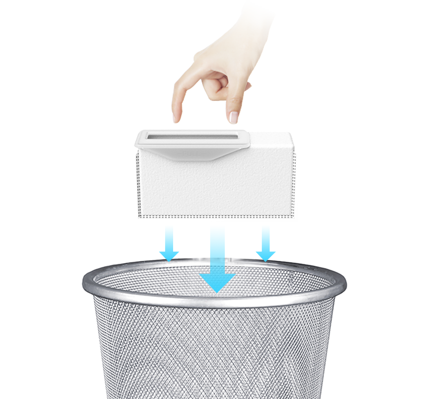 500ml dust bin with hygienic one-touch emptying function