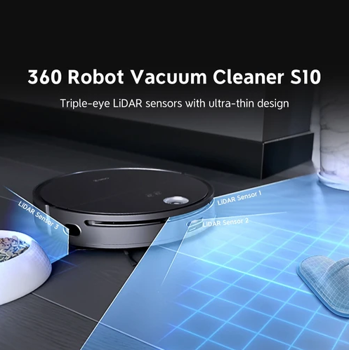 360 Robot Vacuum Cleaner S10 adopts innovative built-in LiDAR with height of just 8.5 cm